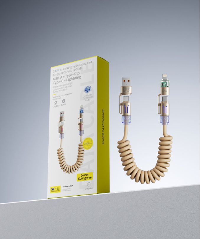 20分鐘前【自動收納】彈簧快充線 · 四合一 【240W極速充 · 自適應】 - 🔥 3條裝 NT$1290(辦公室也要)
