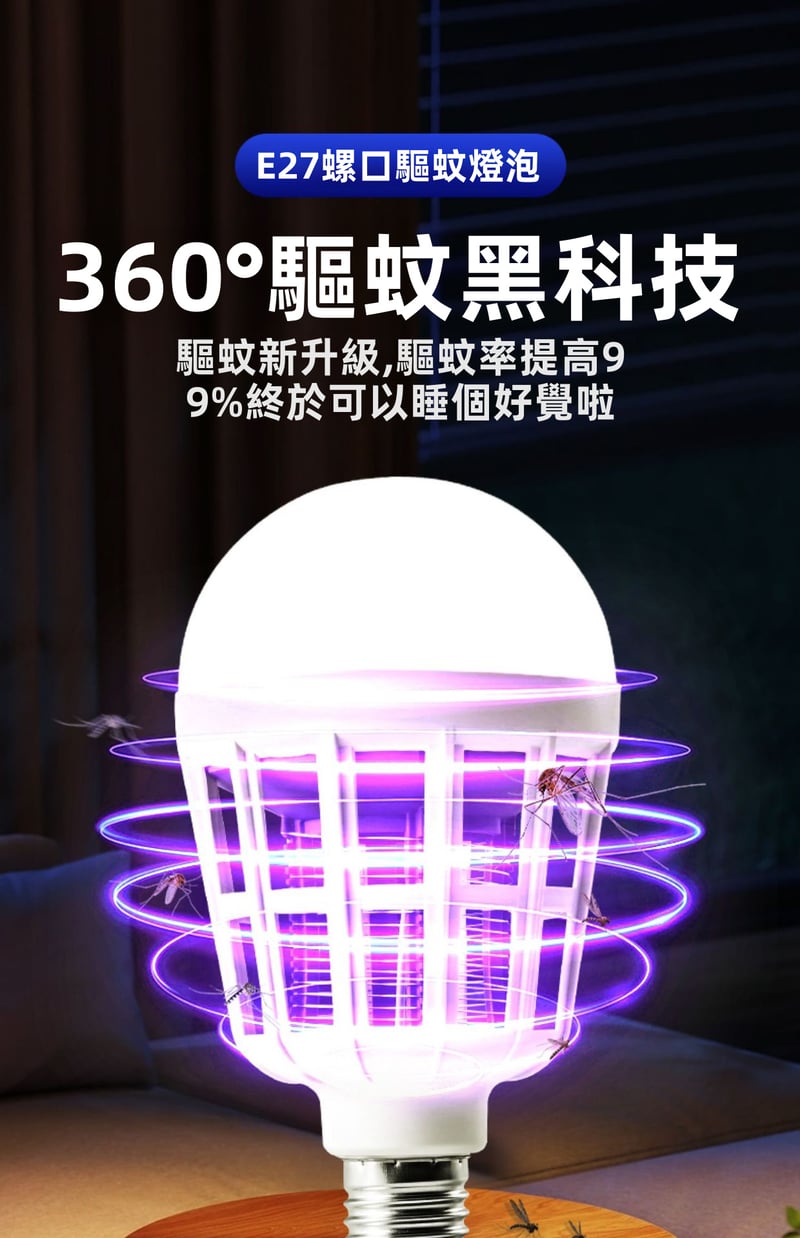 7分鐘前限時搶購 LED照明滅蚊燈E27螺口一擰即裝,UV紫光誘蚊,節能LED無頻閃,護眼超安全,居家戶外兩相宜 - 5入組-[均價299】NT$1499