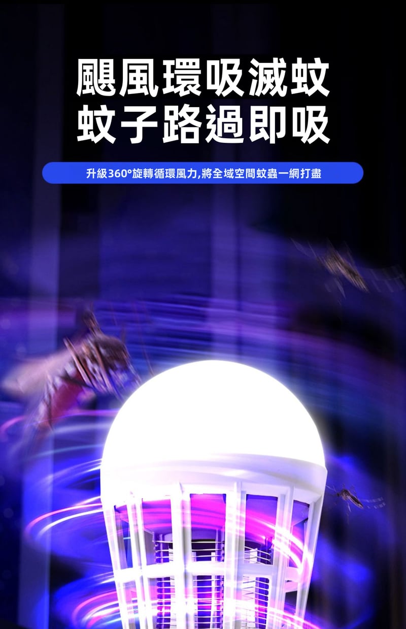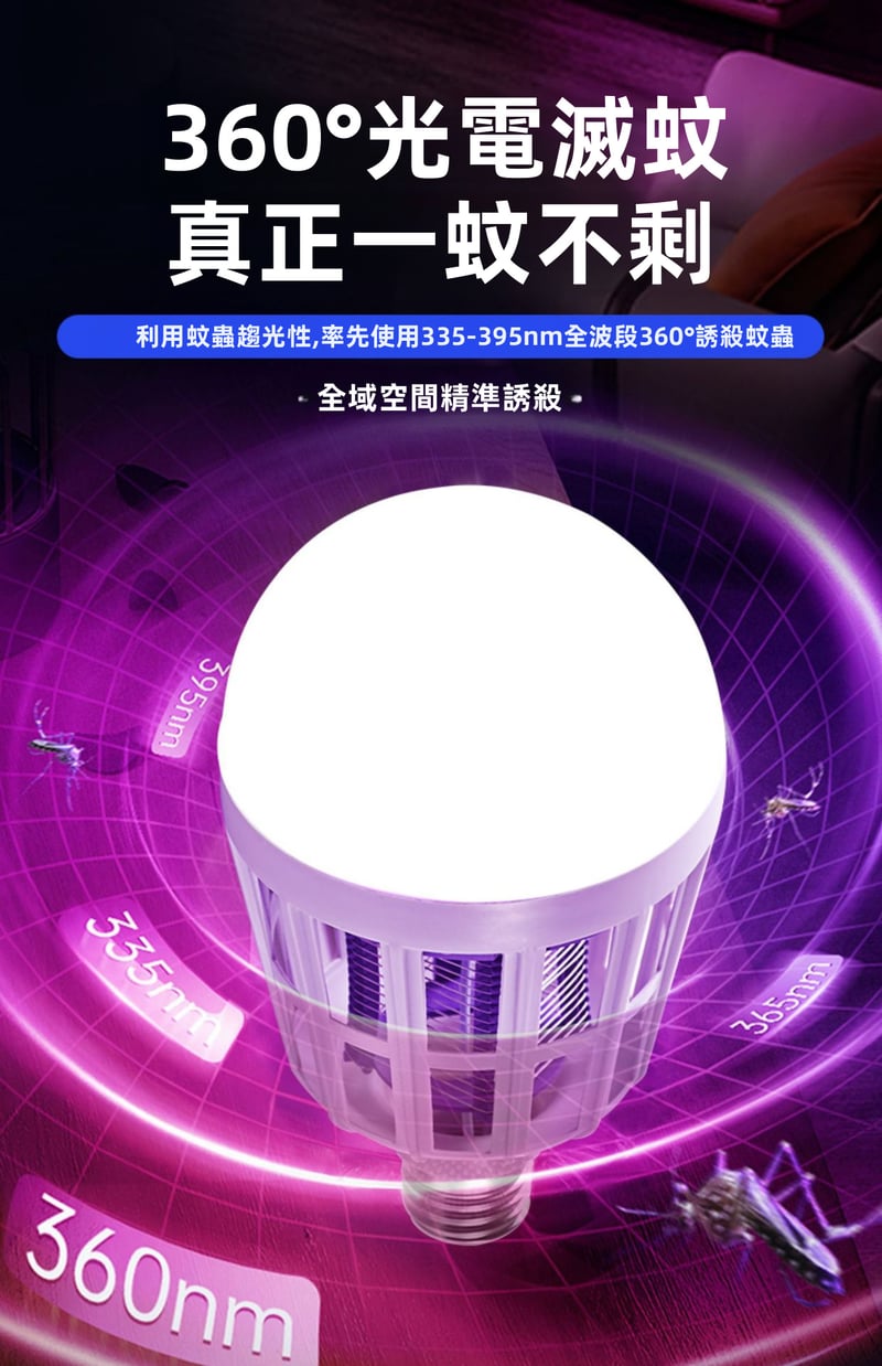 12分鐘前限時搶購 LED照明滅蚊燈E27螺口一擰即裝,UV紫光誘蚊,節能LED無頻閃,護眼超安全,居家戶外兩相宜 - 5入組-[均價299】NT$1499
