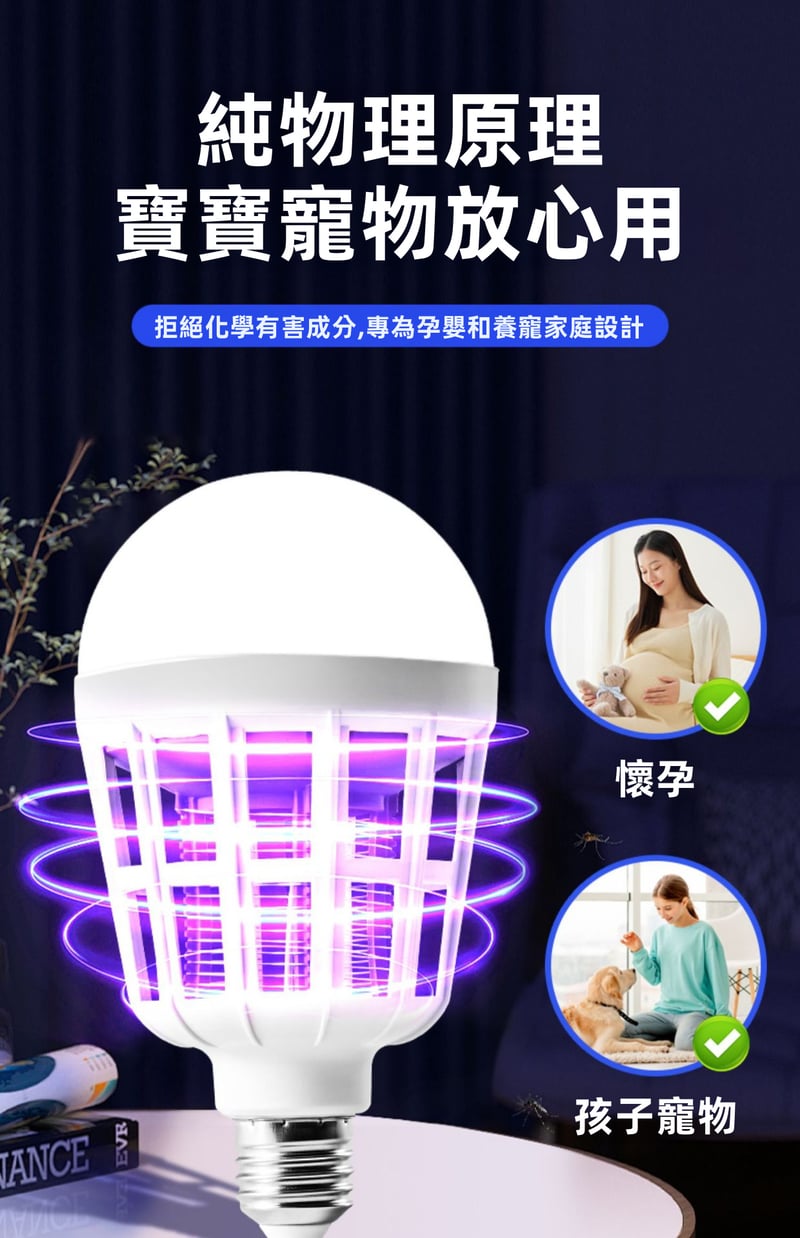 7分鐘前限時搶購 LED照明滅蚊燈E27螺口一擰即裝,UV紫光誘蚊,節能LED無頻閃,護眼超安全,居家戶外兩相宜 - 3入組-【均價399】NT$1199